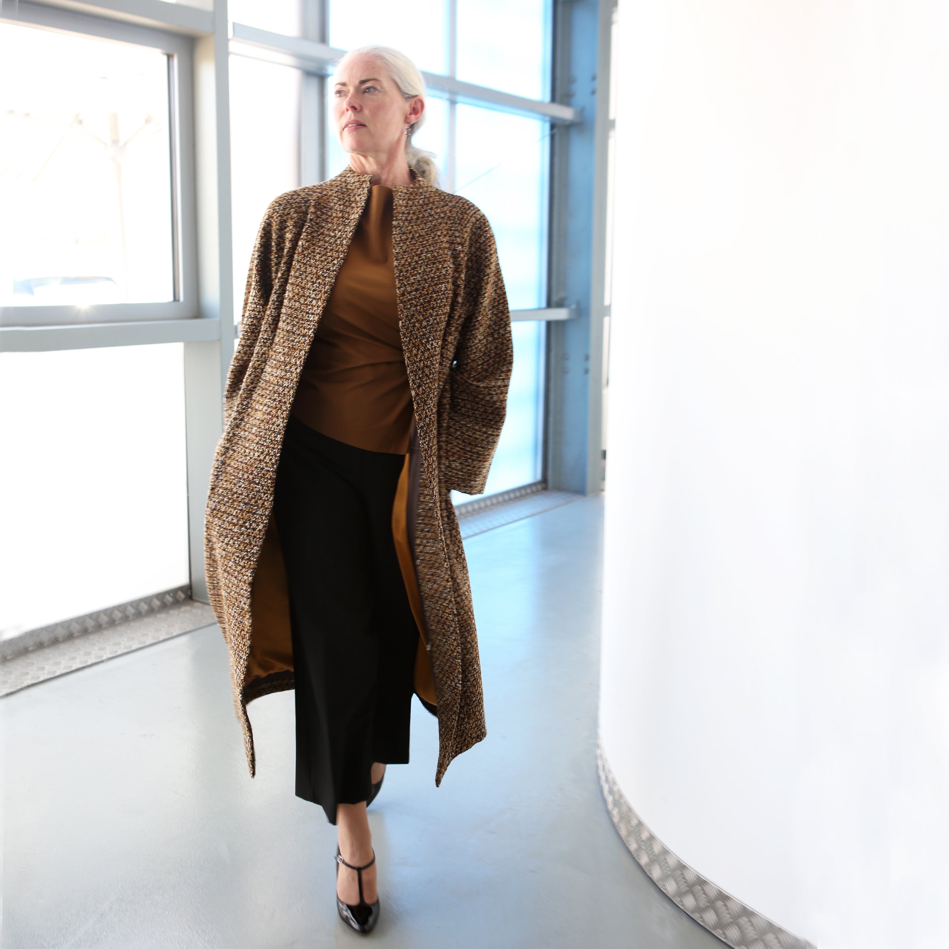 The Ganz Coat in Teal Swirl Silk Mix Brocade