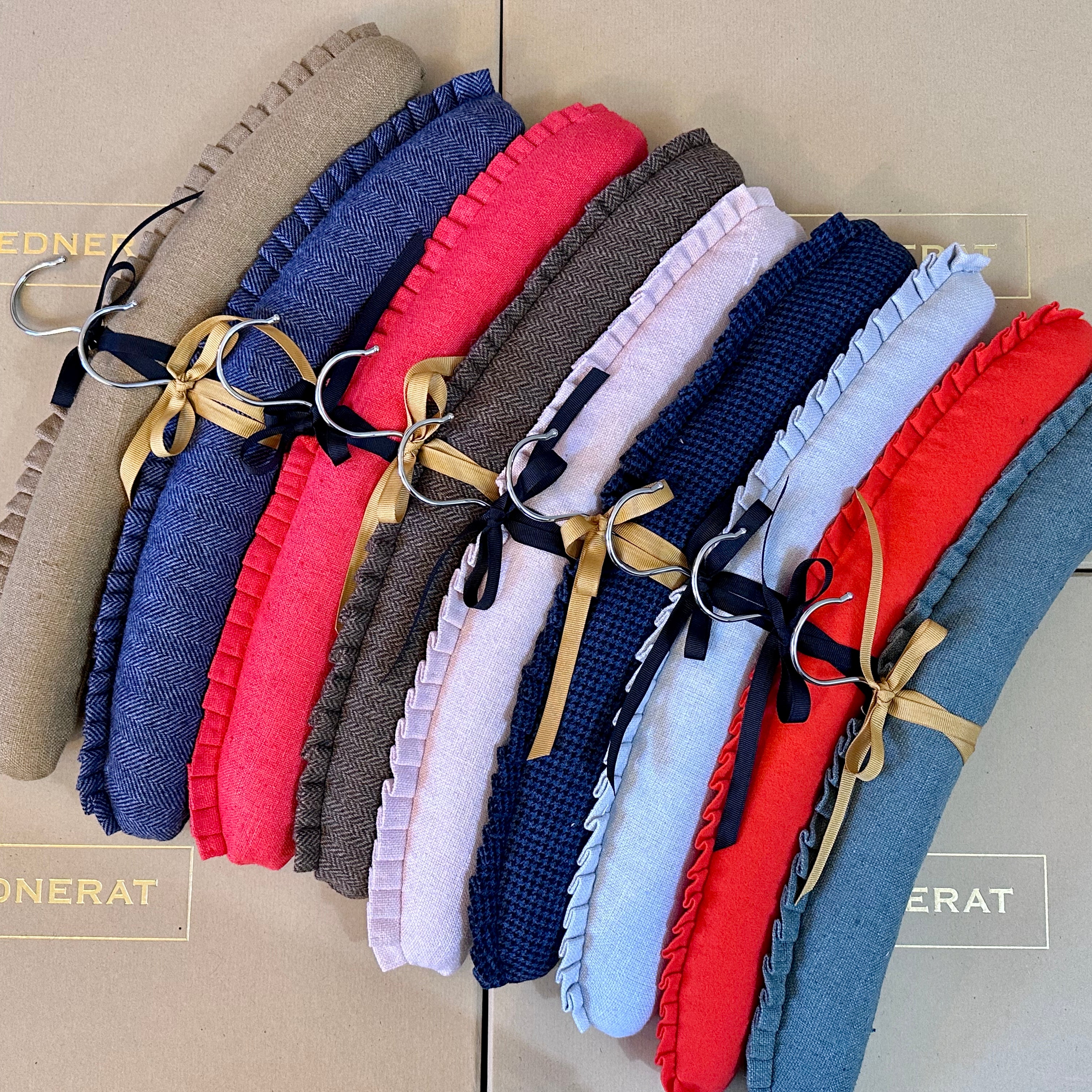 As all makers do, we end up with short ends and scraps. The longer pieces we save for our mens' waistcoats at Weskit, the smaller pieces are made into the most beautiful padded coat-hangers for us by Anne in Risca and wonderful hairbands by Vanessa Rose in Somerset.