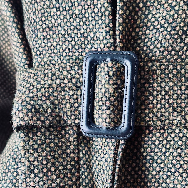 These belts are made to order. They are made in the same fabric as your coat, and cut to your chosen length. Our belts can be ordered with or without leather sliders and with or without keepers.