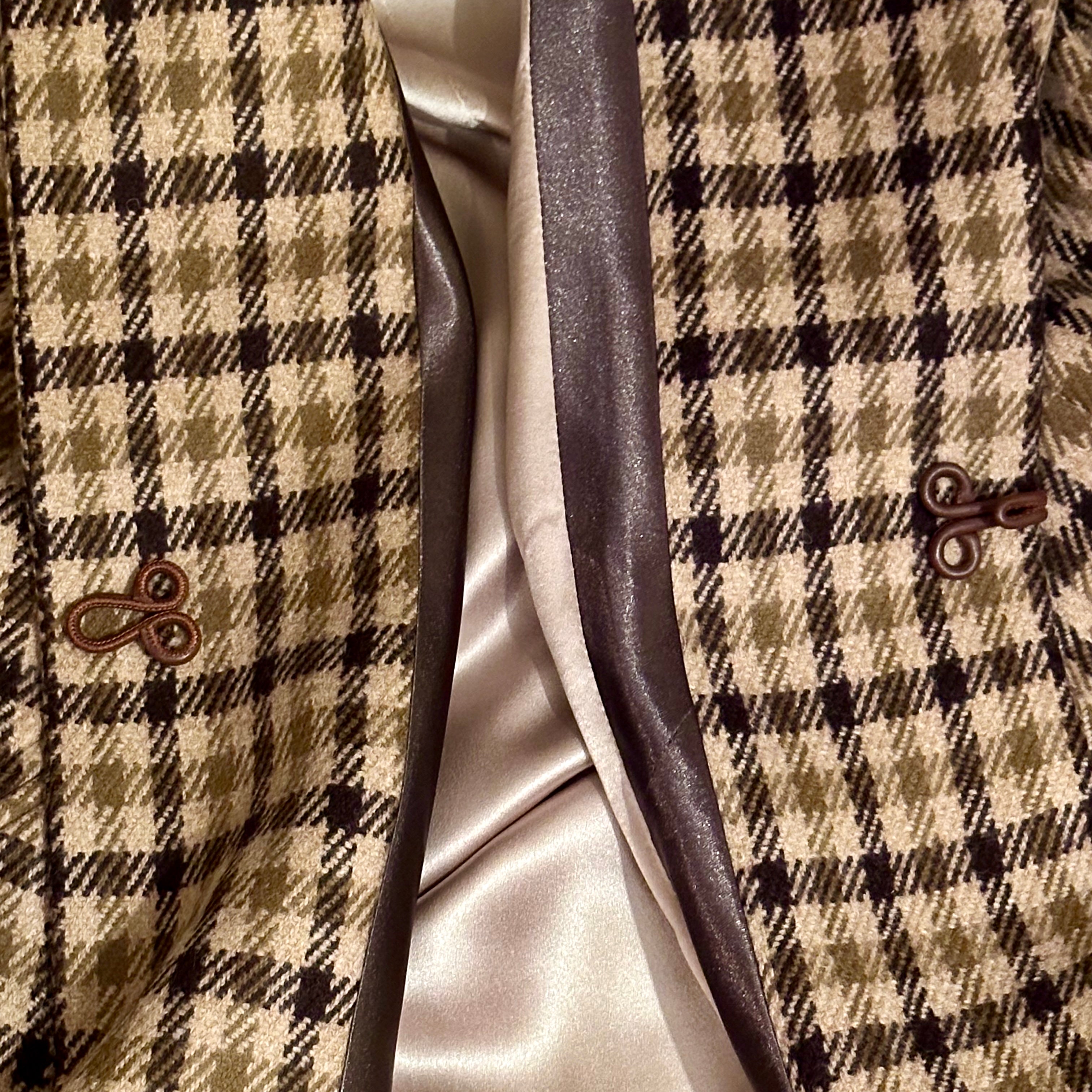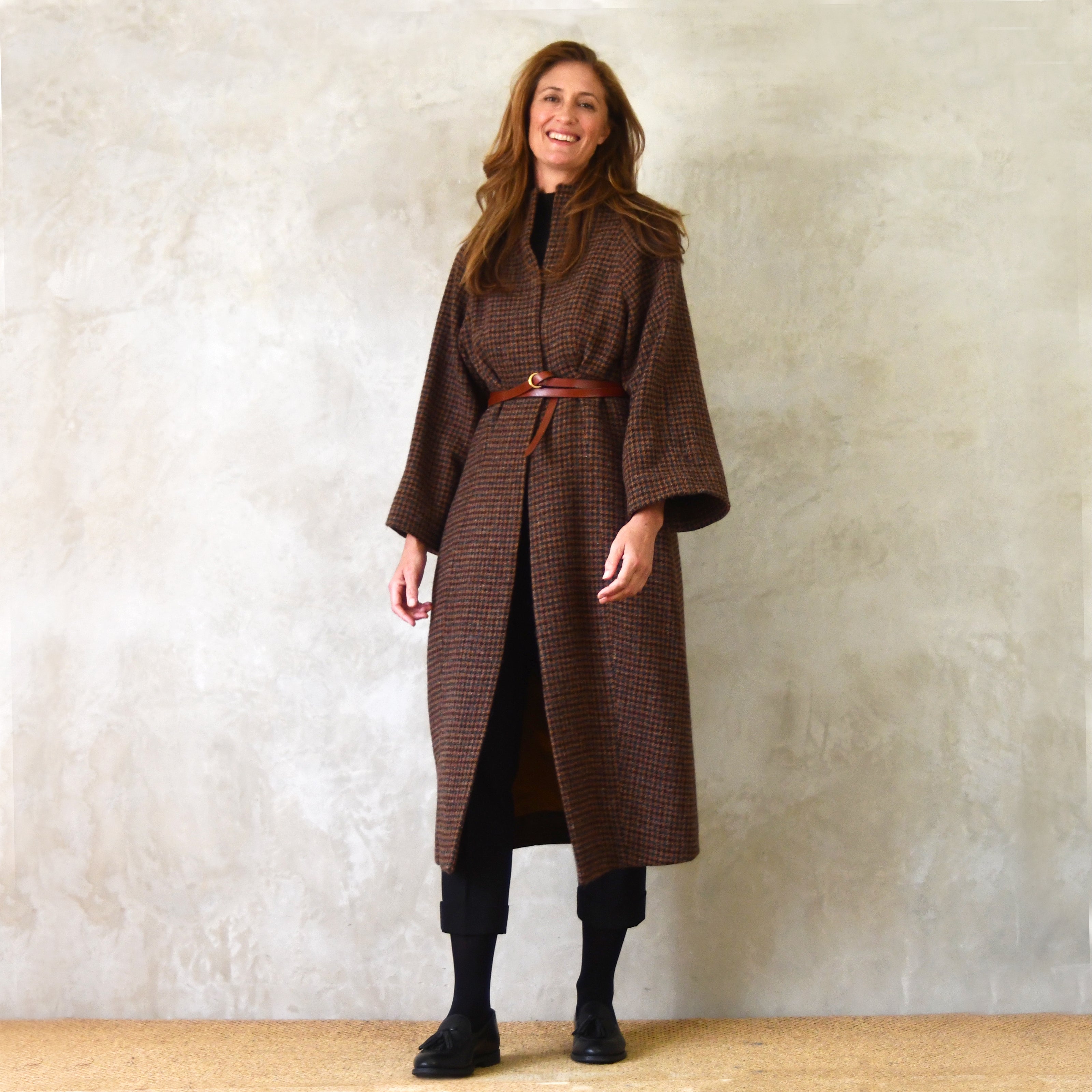 Most of our coats are offered without closures attached, allowing you to choose where and how and if you would like to close your coat. Each of us will have different preferences on this – and of course the height and positioning of each closure will depend on each wearer.