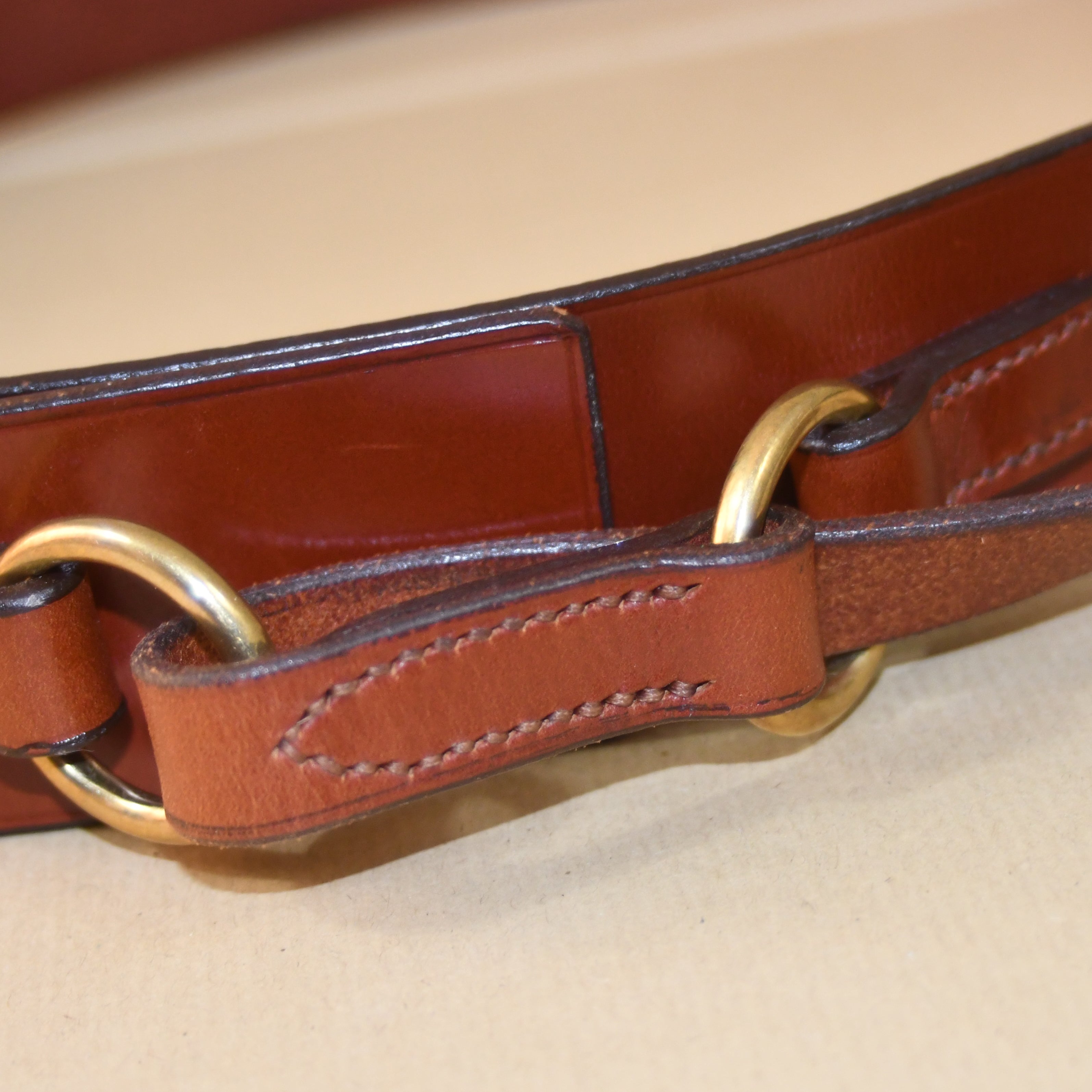 Together with a skilled saddler in Herefordshire we have designed a small range of leather belts which can be worn over our coats. Made from British Saddle Leather with Sold Brass Fittings.