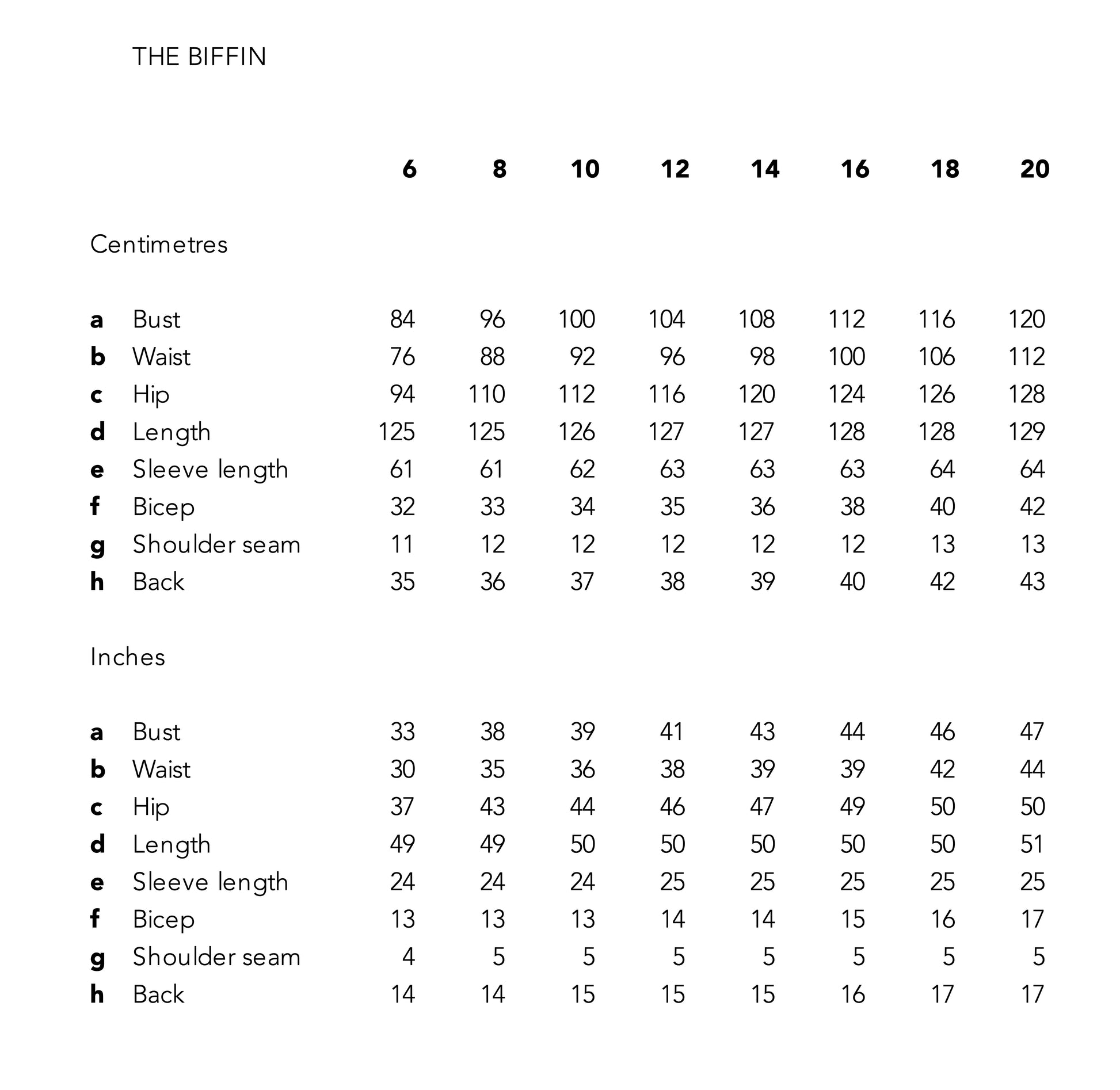 The Biffin is one of the most shaped and tailored of our coats. It has neatly tailored shoulders and a structure that mirrors the traditional hourglass shape.