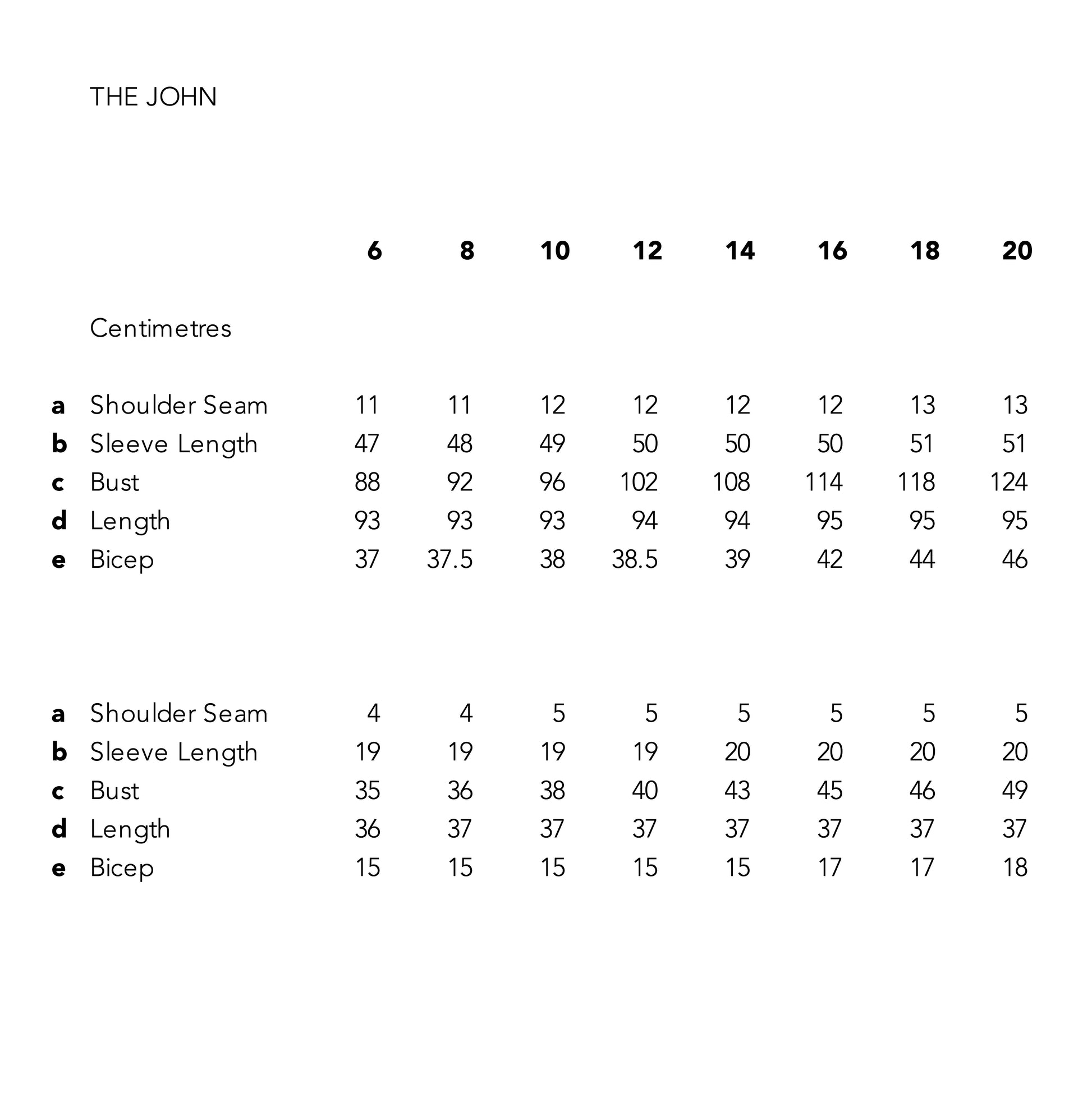 Flattering for all shapes and sizes, the John can be lengthened or shortened. Sleeve lengths can be adapted according to taste.