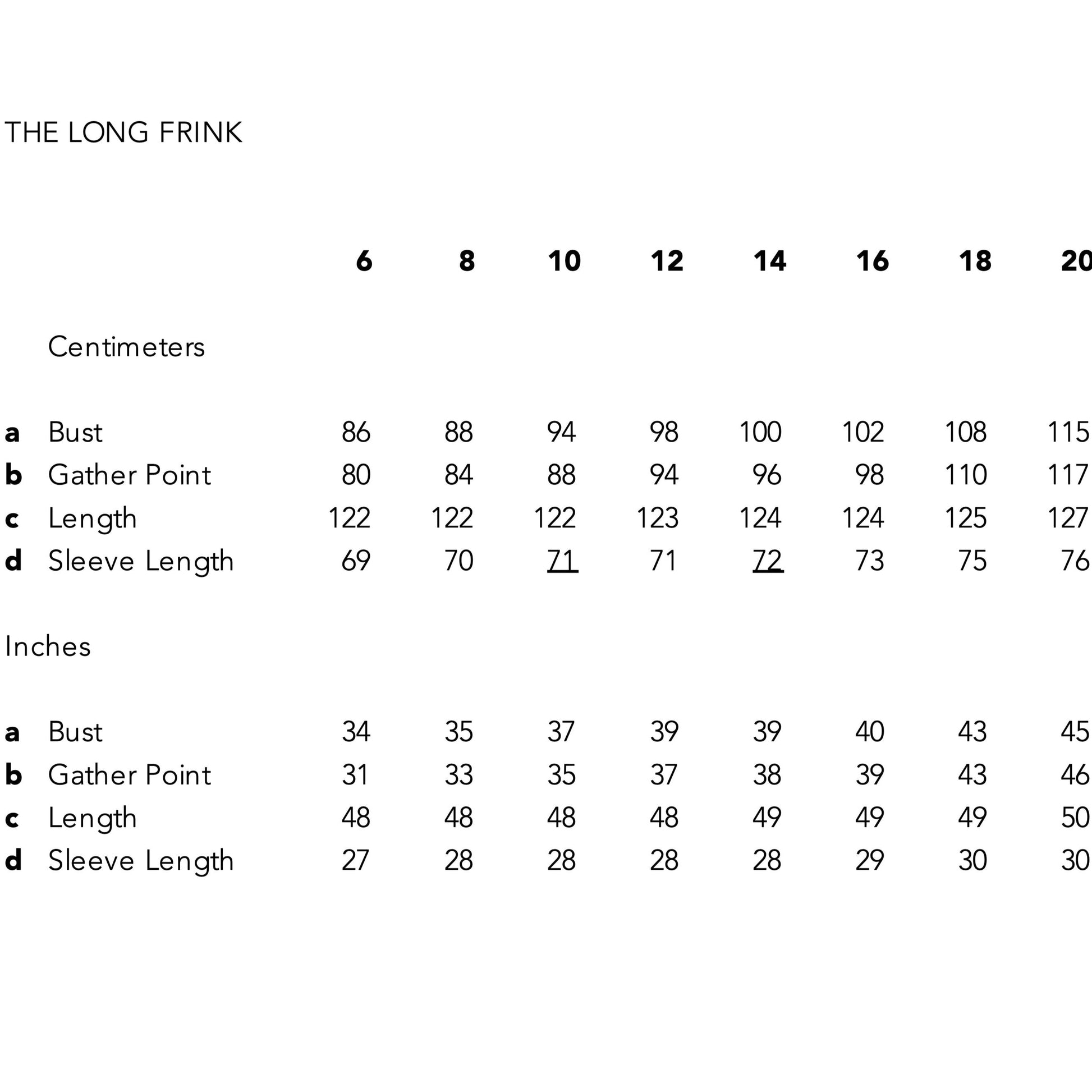 The Long Frink gathers loosely under the bust with gentle tucks at both front and back. Hidden pockets nestle at the side seams.
